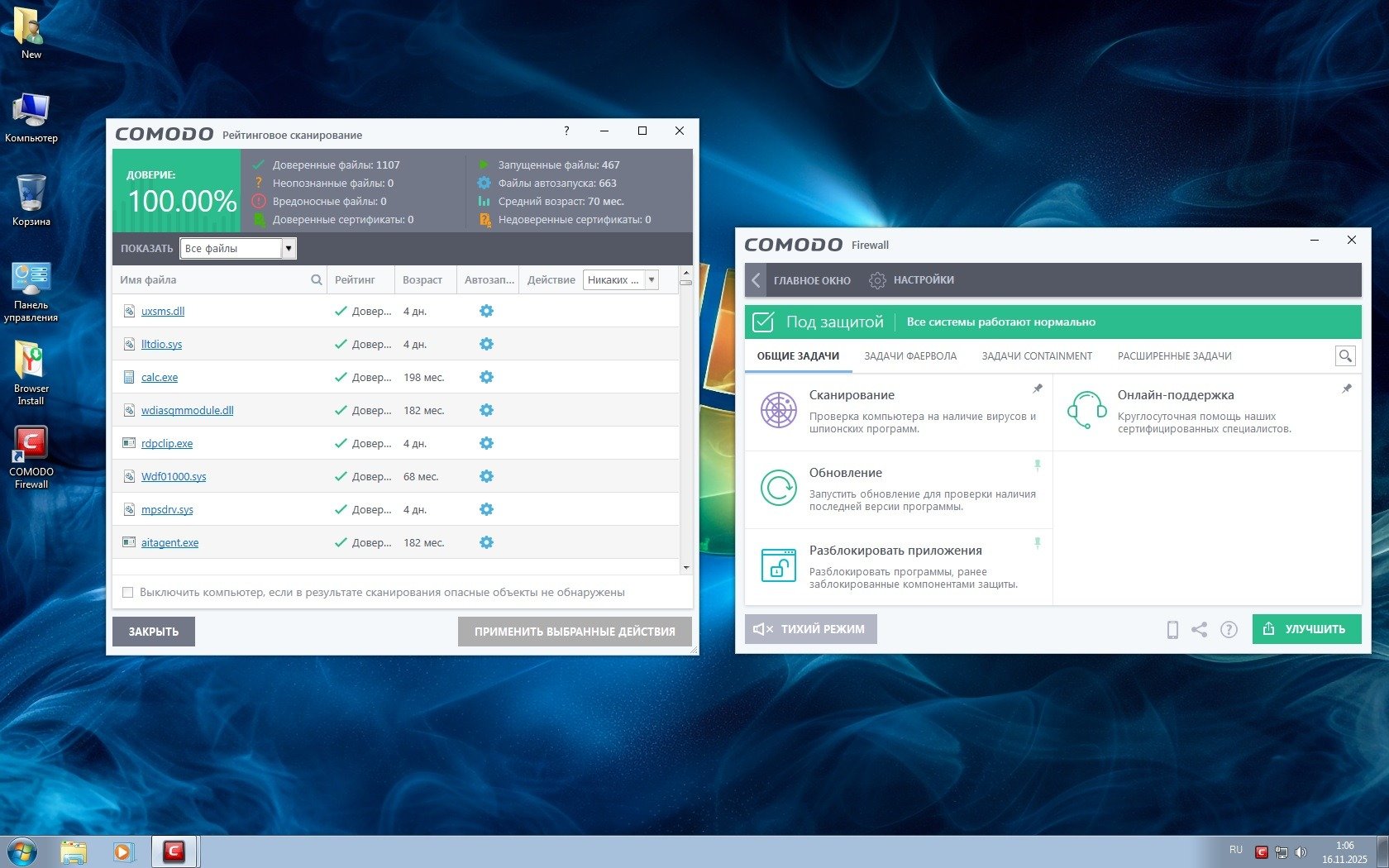 Система перестаёт донимать всплывающими окнами, но контроль остаётся включённым. -