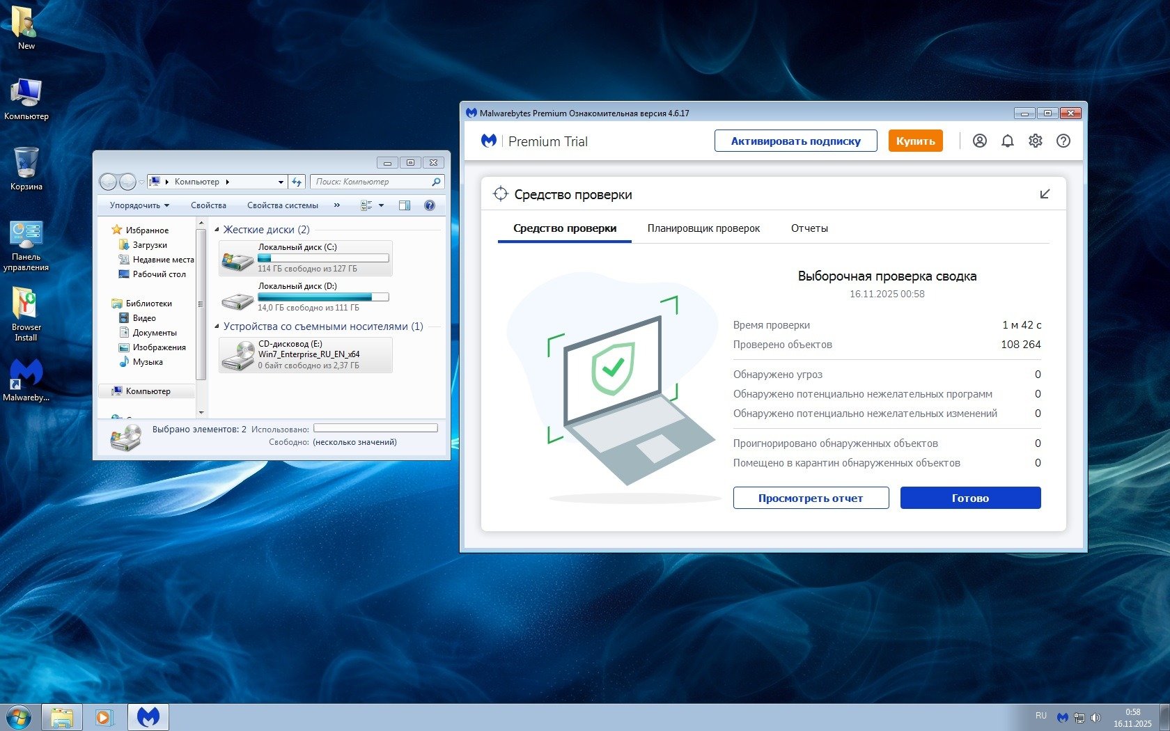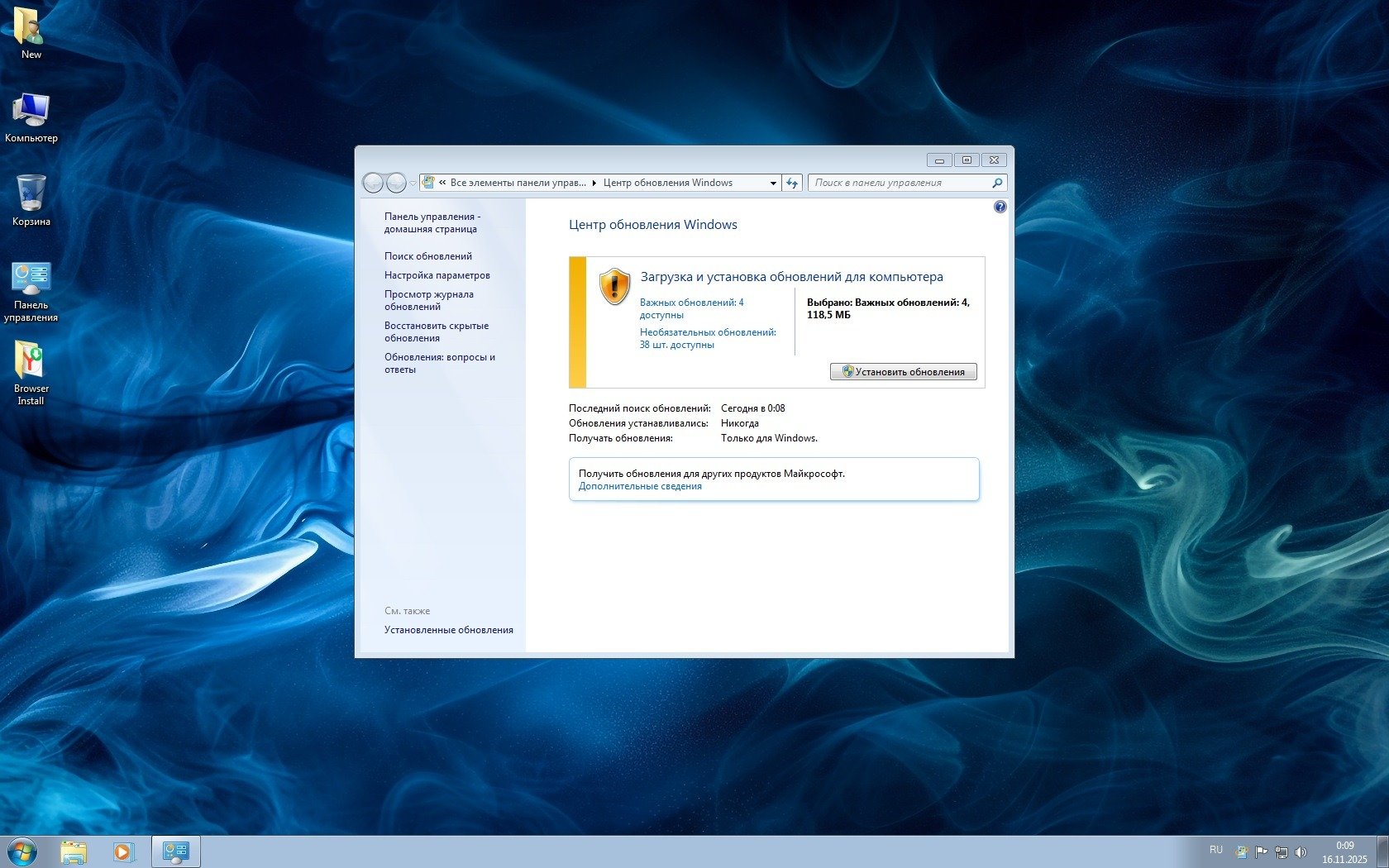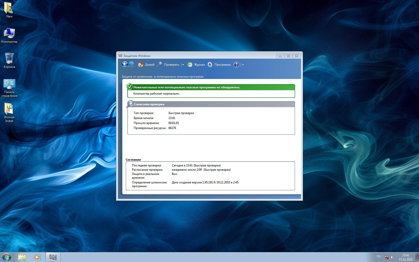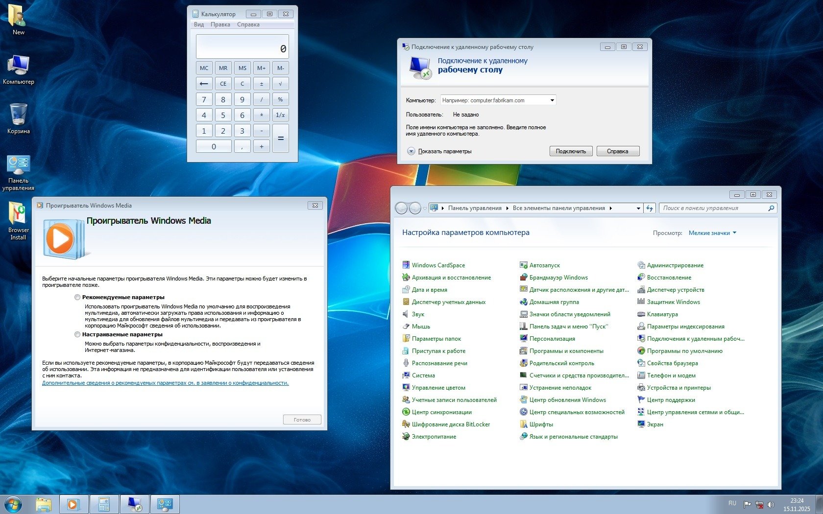 Она оптимизирована для современных условий: гибернация отключена, план питания выставлен на «Максимальную производительность», а Defender оставлен активным — при желании его можно выключить в пару кликов. Все ключевые службы и задания, замедляющие систему, вычищены, а WinSxS аккуратно очищен через DISM. В итоге — идеальный баланс скорости, безопасности и оригинального интерфейса Windows 7 без потерь.