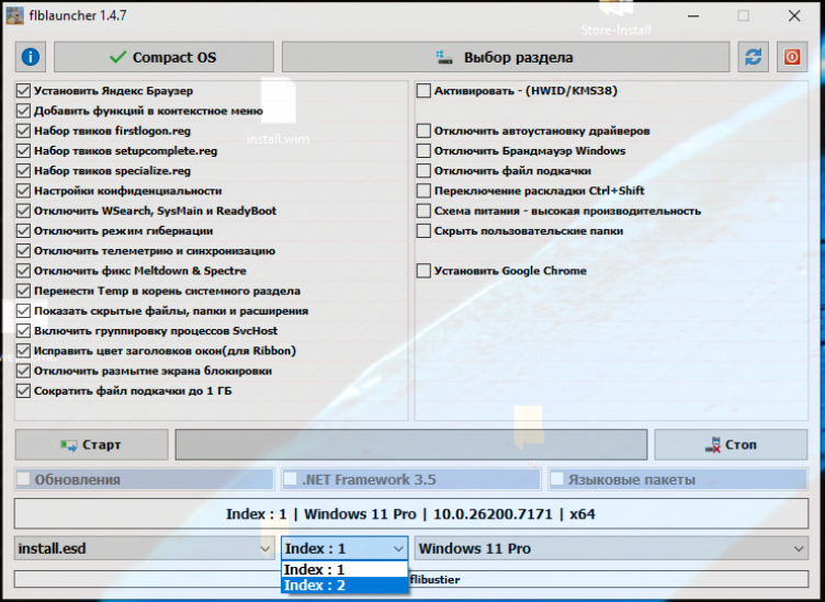 Параметры образа Windows 11 all versions 25H2 s flblauncher 26200.7171 LITE/FULL на русском: