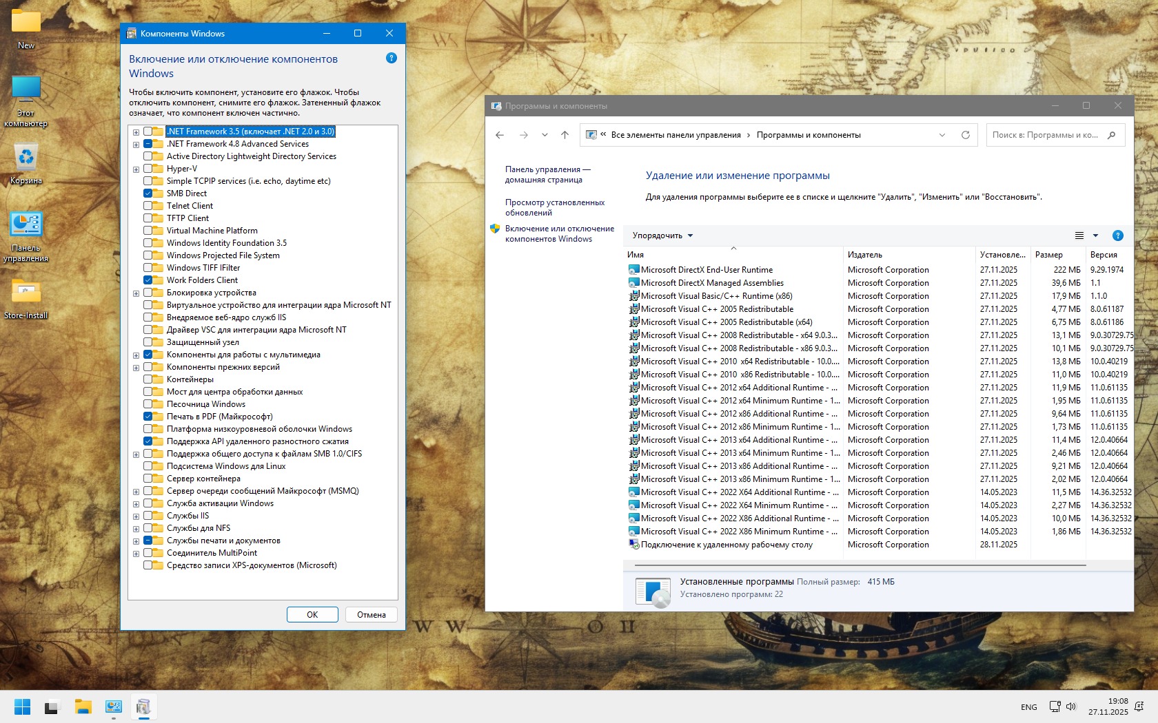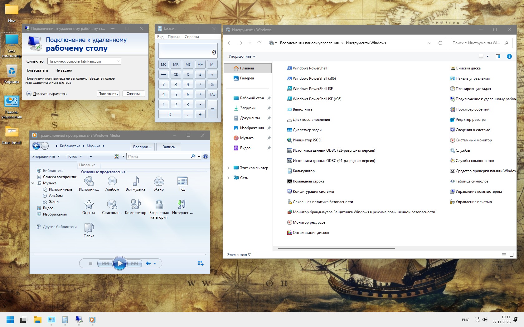 Сборка основана на чистом ноябрьском оригинале 25H2 без аудита, с аккуратной оптимизацией без фанатизма. Удалён визуальный и сервисный мусор, выключены навязанные защиты, сохранён WebView2, добавлены DirectX и VC++, нормальный интерфейс и логичная Панель задач. Edge, OneDrive и даже браузеры — строго по желанию - управляем в лаунчере.