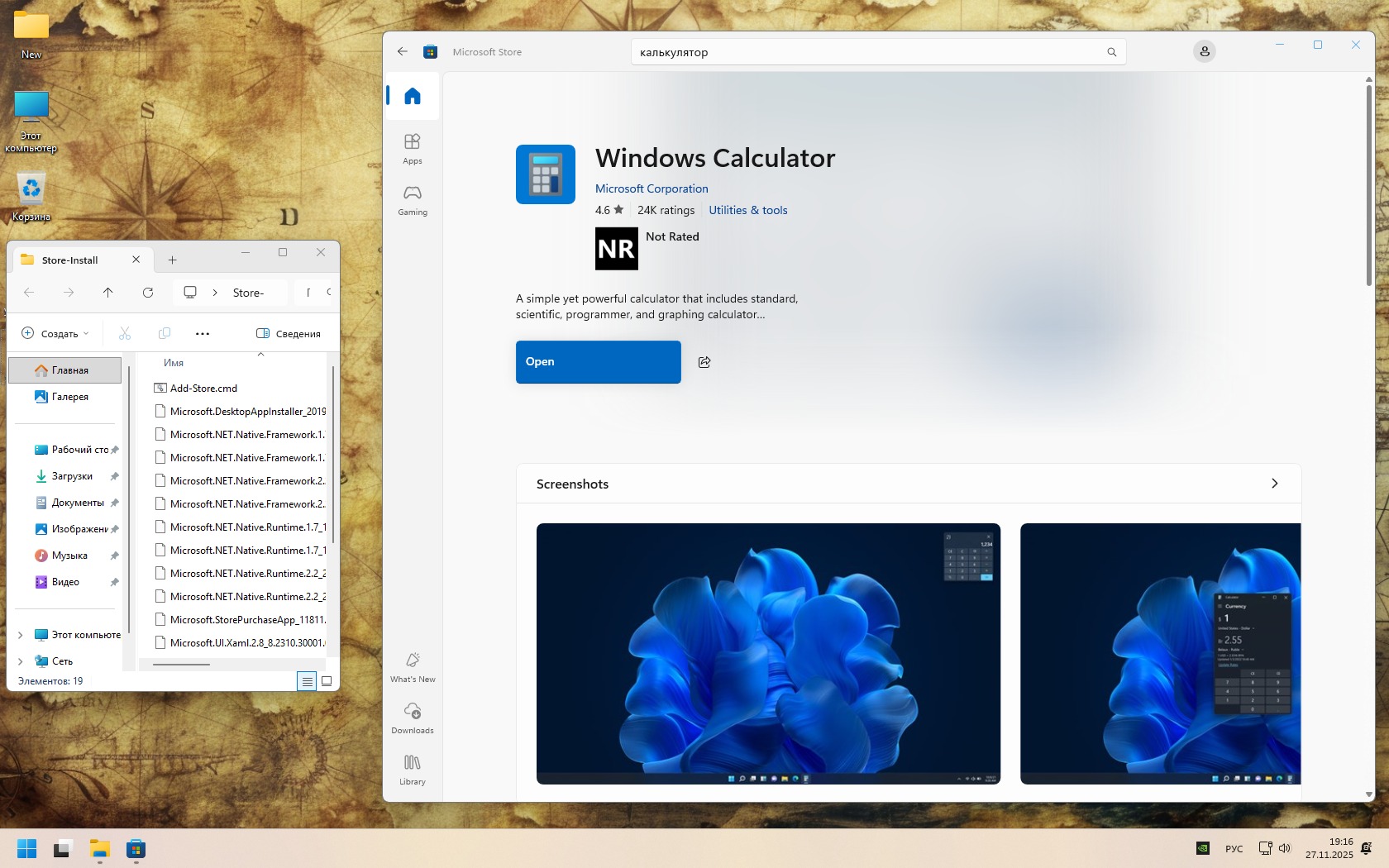 Установщик Microsoft Store вынесен на Рабочий стол.