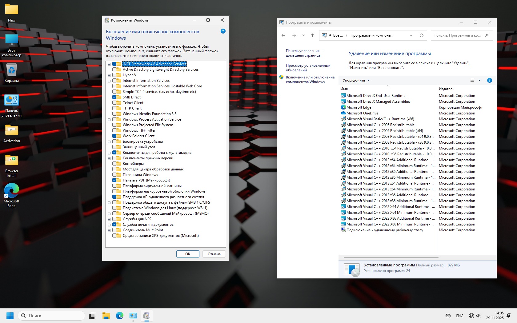 -Интересная особенность 26H1 - отсутствует компонент Framework 3.5 в Компонентах Windows.