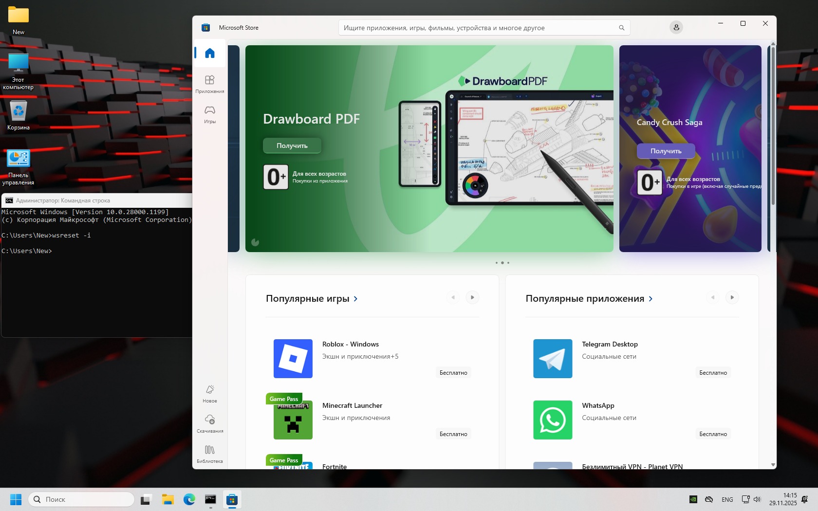 -плиточные приложения. Чтобы добавить Магазин - используйте wsreset -i