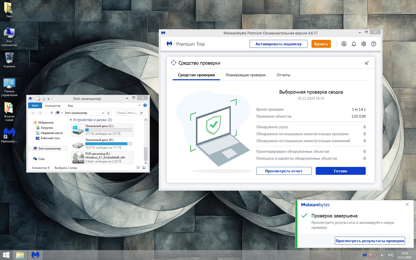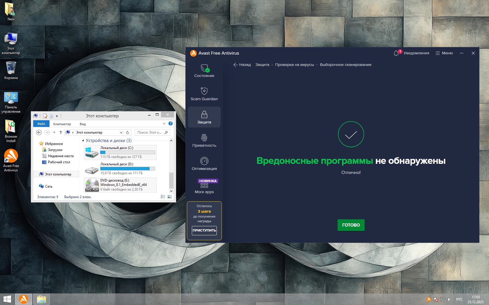 Отдельный и важный плюс —конфиденциальность. В Windows 8.1 отсутствует агрессивная телеметрия, а в чистой сборке система не следит за пользователем и не живёт «фоном своей жизнью». Это последняя Windows, где компьютер по-настоящему принадлежит владельцу, а не наоборот. Именно поэтому 8.1 — идеальный выбор для тех, кто ценит скорость, контроль и здравый смысл. Всего 25 процессов и меньше гигабайта оперативки со старту - говорит о многом.