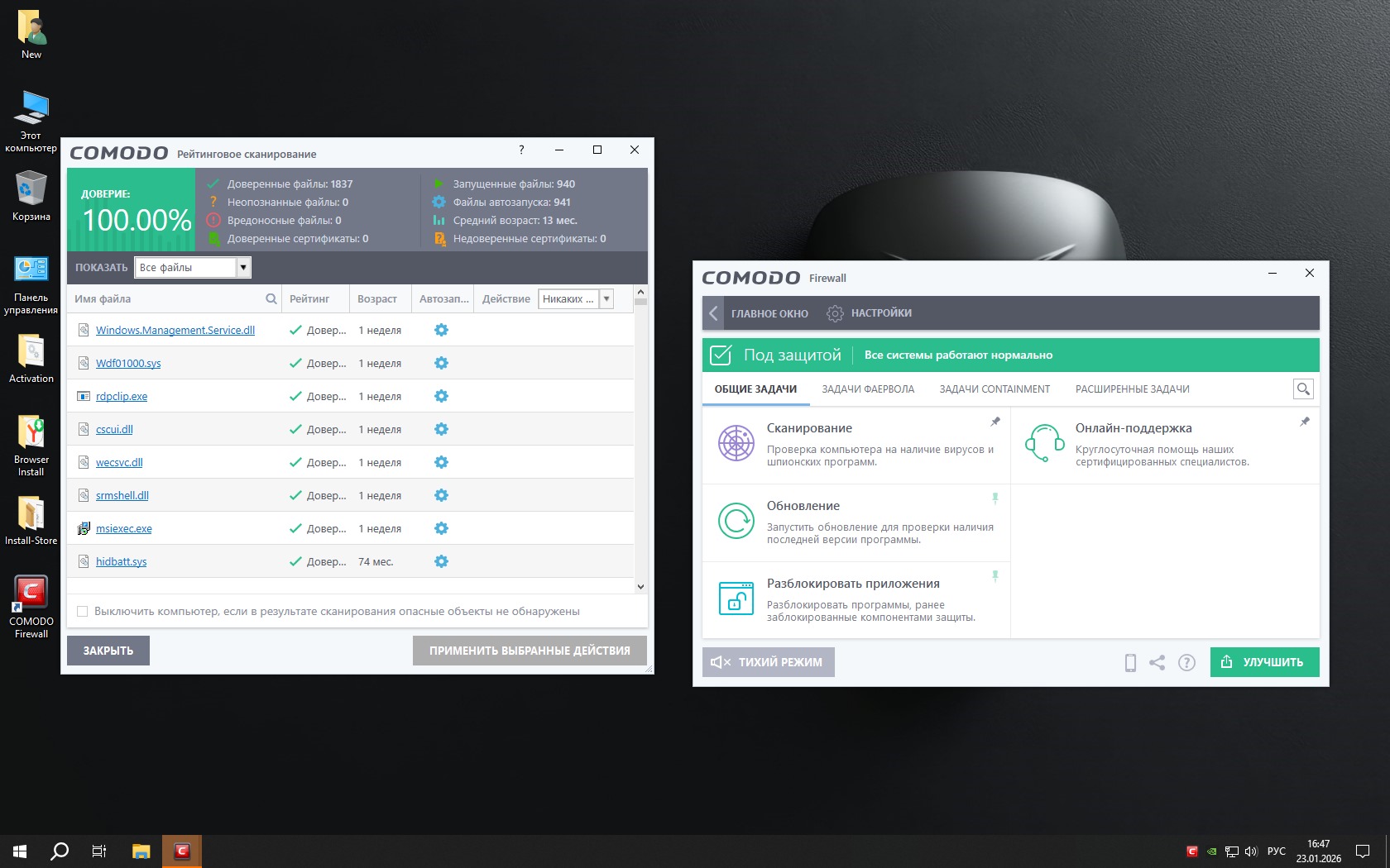 Сборка хорошо подходит для слабых и средних ПК, а также для тех, кому важна тишина системы — без Edge, Защитника, SmartScreen и других компонентов, активно взаимодействующих с интернетом. Все изменения сделаны аккуратно: совместимость с софтом и играми сохранена, критические функции Windows не выломаны. По результатам тестов и проверок антивирусами система чистая, стабильная и предсказуемая. Это рабочая Windows 10, где приватность — не маркетинг, а следствие инженерных решений.