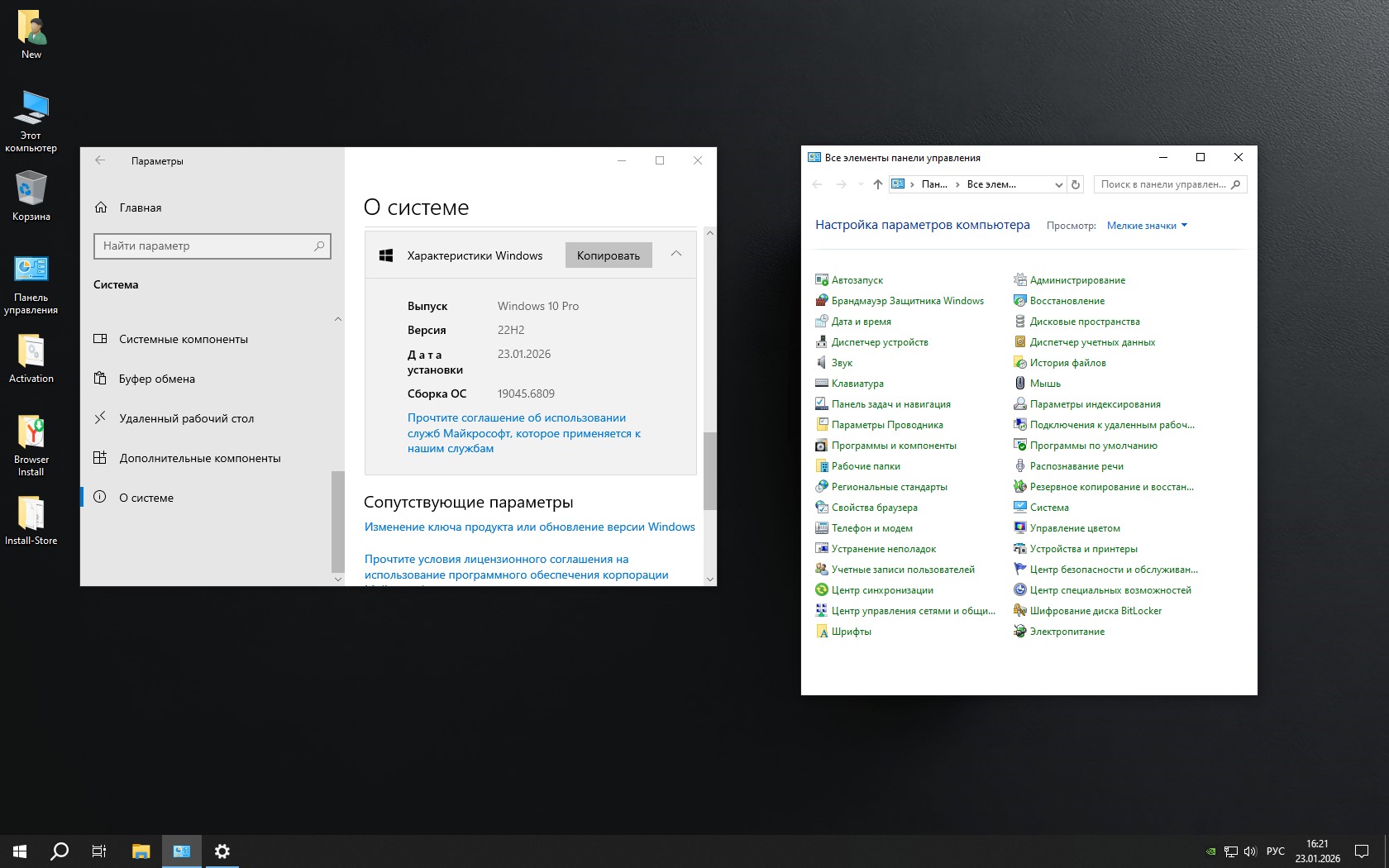Параметры образа Windows 10 Pro 22H2 Private Core 19045.6809 RU EN: