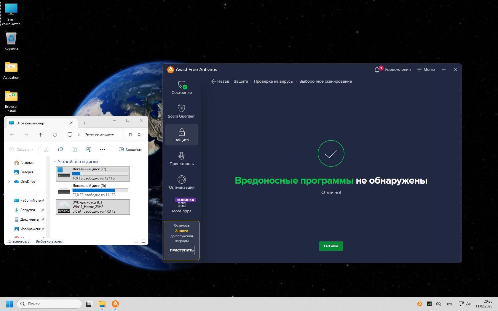 Сборка хорошо подходит для игр, работы, дома и повседневного использования. Минимально нагружает систему — стартует примерно с 2 ГБ памяти и без лишних процессов. Магазин Microsoft при необходимости легко устанавливается вручную. Это универсальная Windows без мусора, но с полным функционалом.