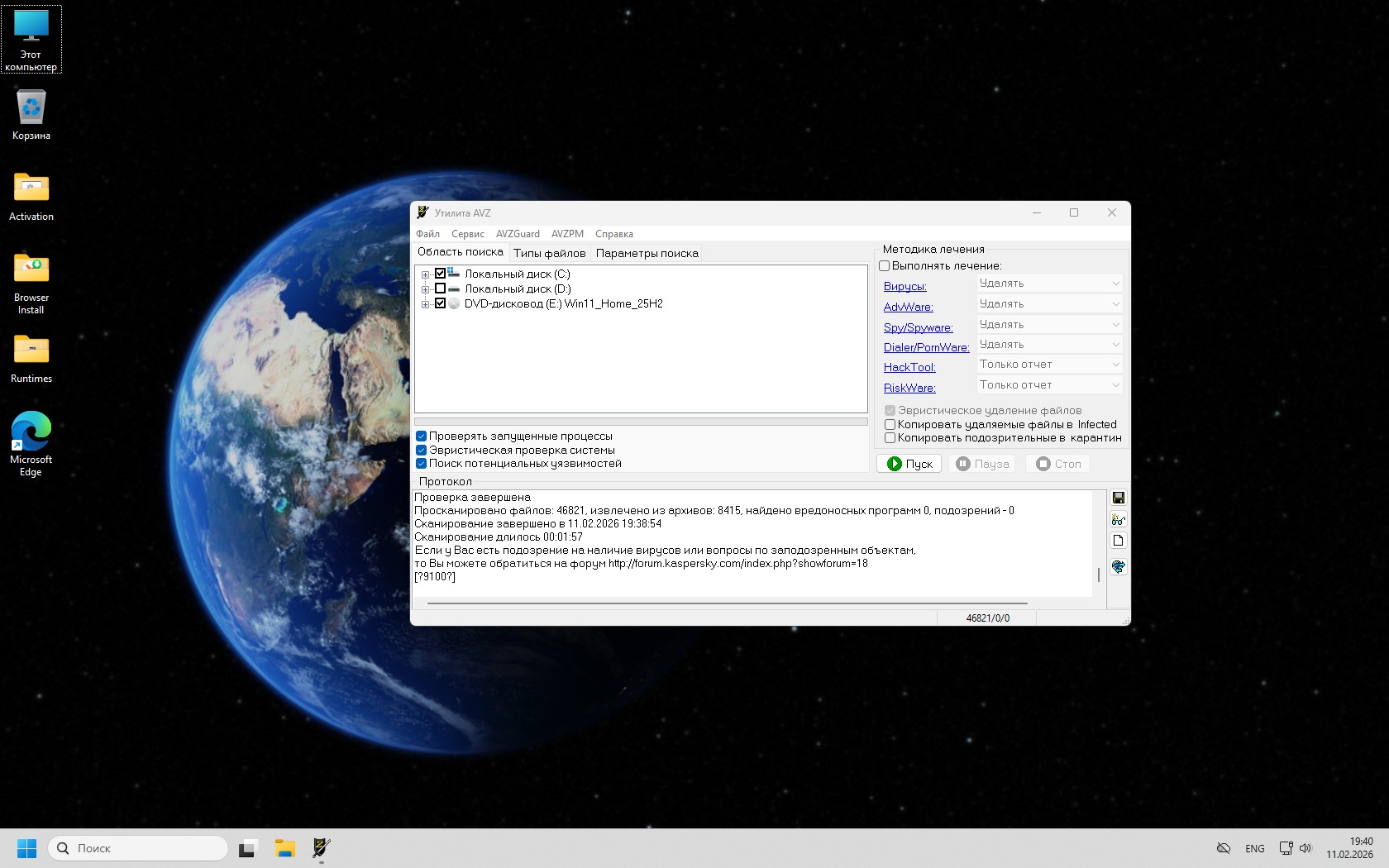 -Отключены/удалены самые нежелательные задания Планировщика.