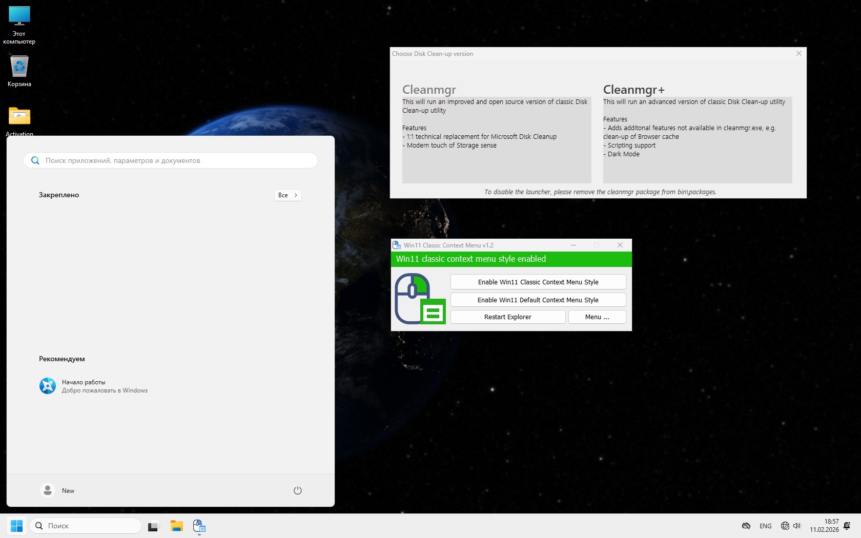 -Cleanmgr+ и W11ClassicMenu. Эти программы изначально не требуют установки, они просто скопированы в сборку - поэтому можно их удалить - без всяких следов в системе.