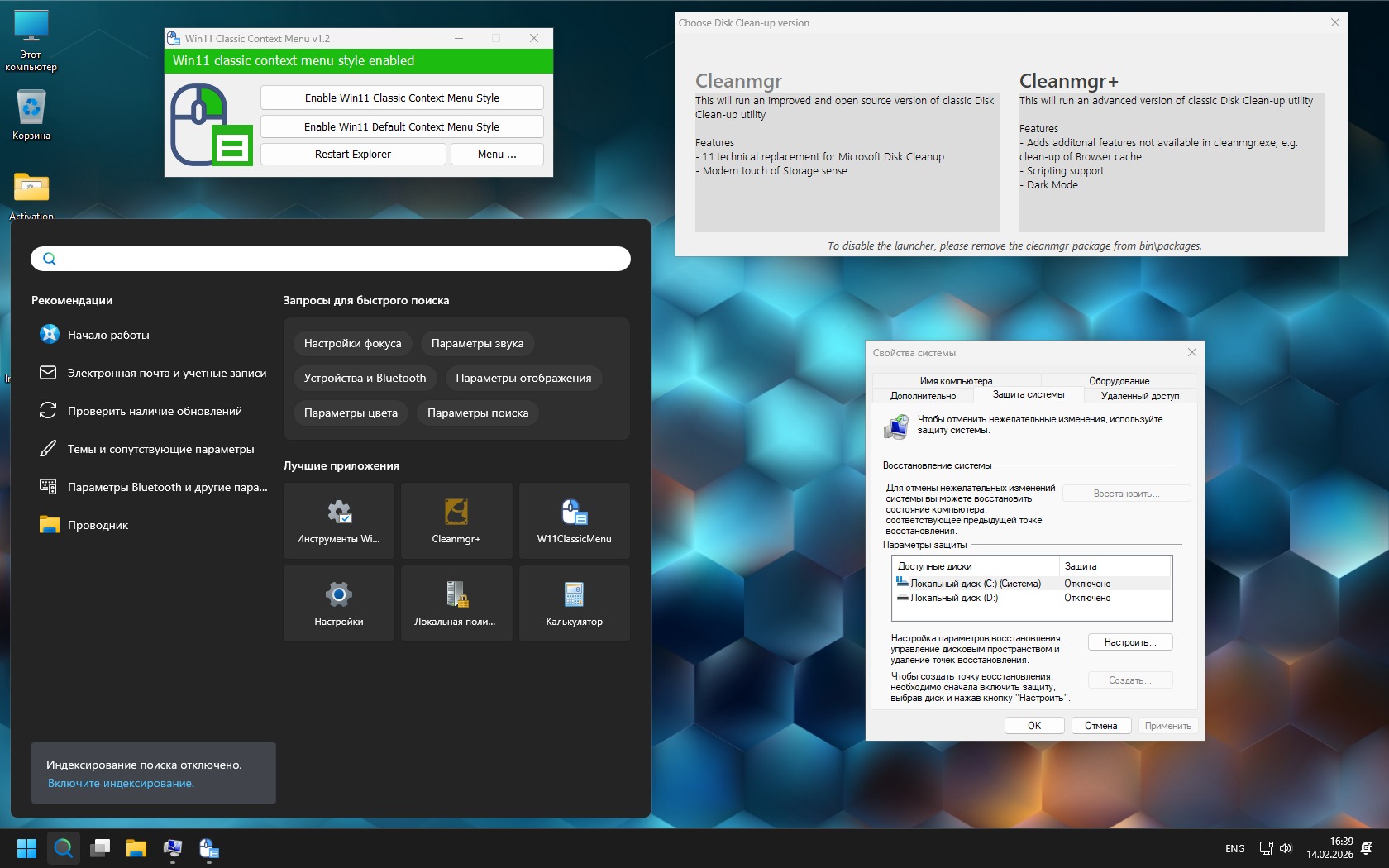 -Проведена оптимизация под SSD/NVMe: отключено индексирование и Sysmain.