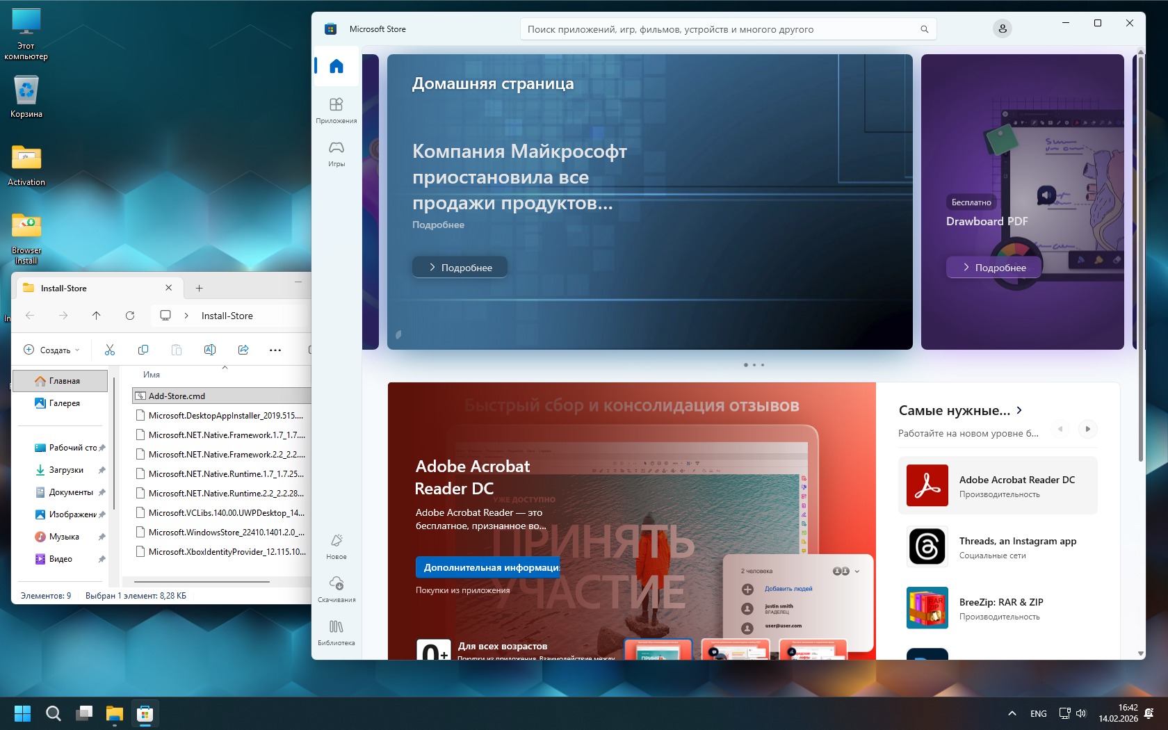-Браузер Edge. Сильно много рекламы/слежки в нем - но если он вам нужен, можно установить.