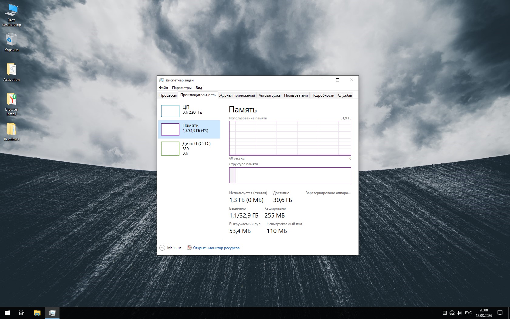 -Отключена фоновая ненужная активность приложений.
