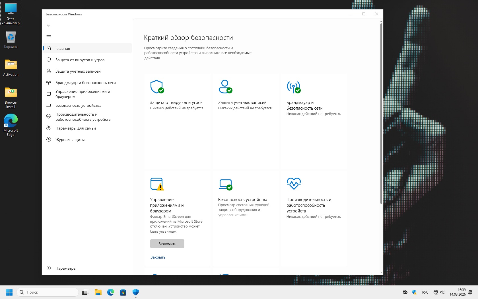 Параметры образа Windows 11 Pro 26H1 с Защитником без телеметрии RU EN v28000.1719: