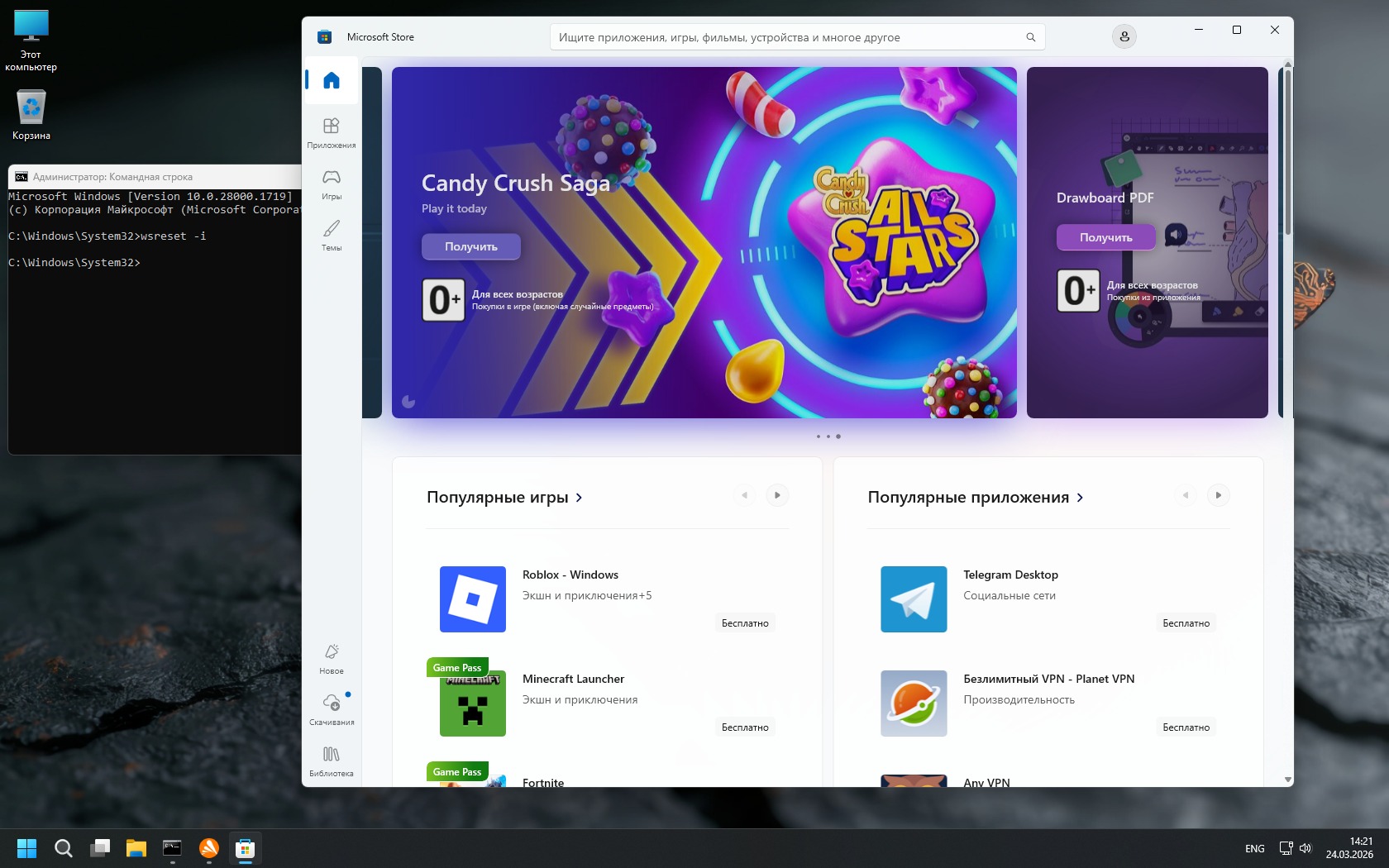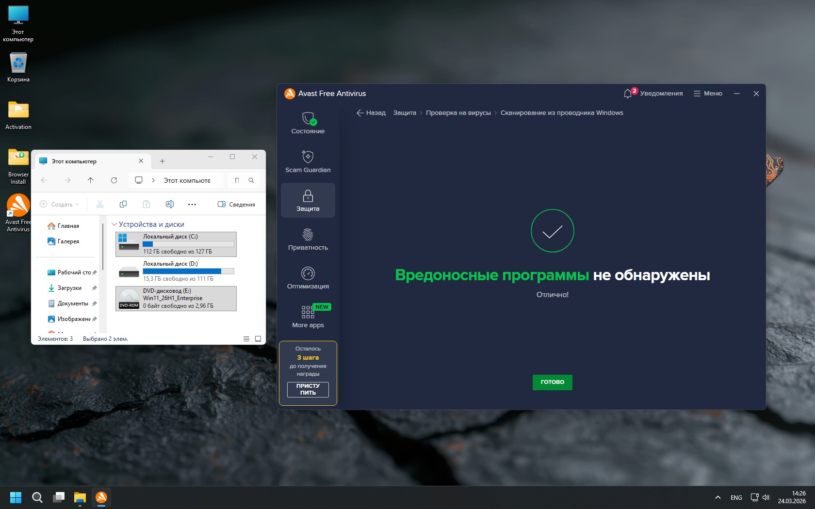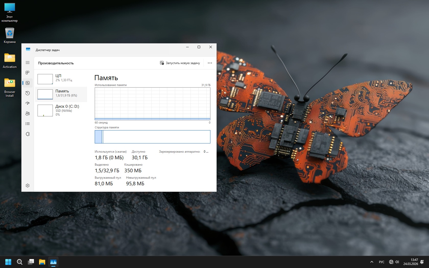 Система показывает уверенную производительность даже на среднем железе: быстрый запуск, низкое потребление памяти и стабильный FPS в играх. Убраны Edge, часть защитных механизмов и телеметрия, что снижает нагрузку и убирает лишние тормоза. При этом сохранён баланс — ключевые функции Windows остаются, а Microsoft Store при необходимости можно установить вручную.