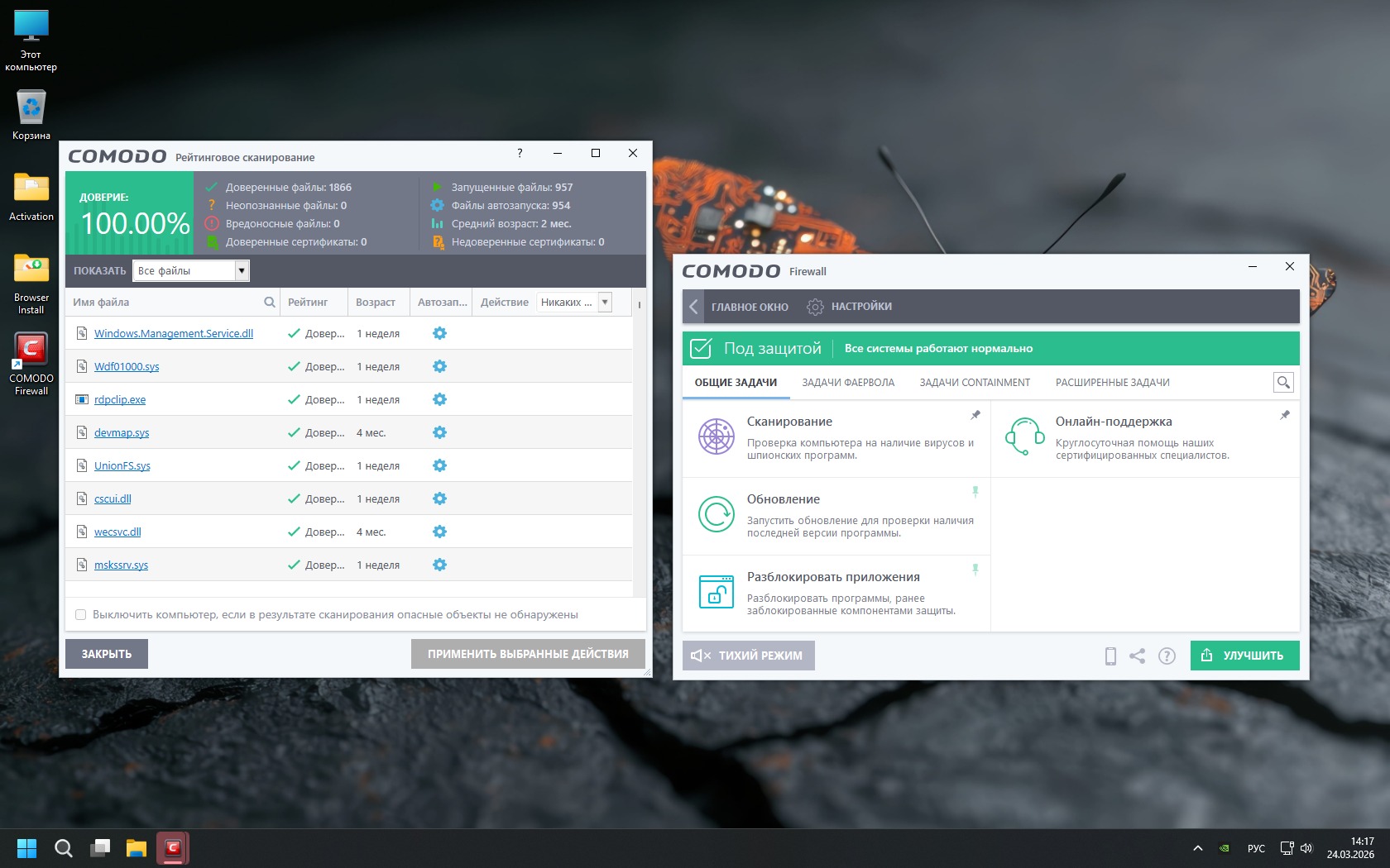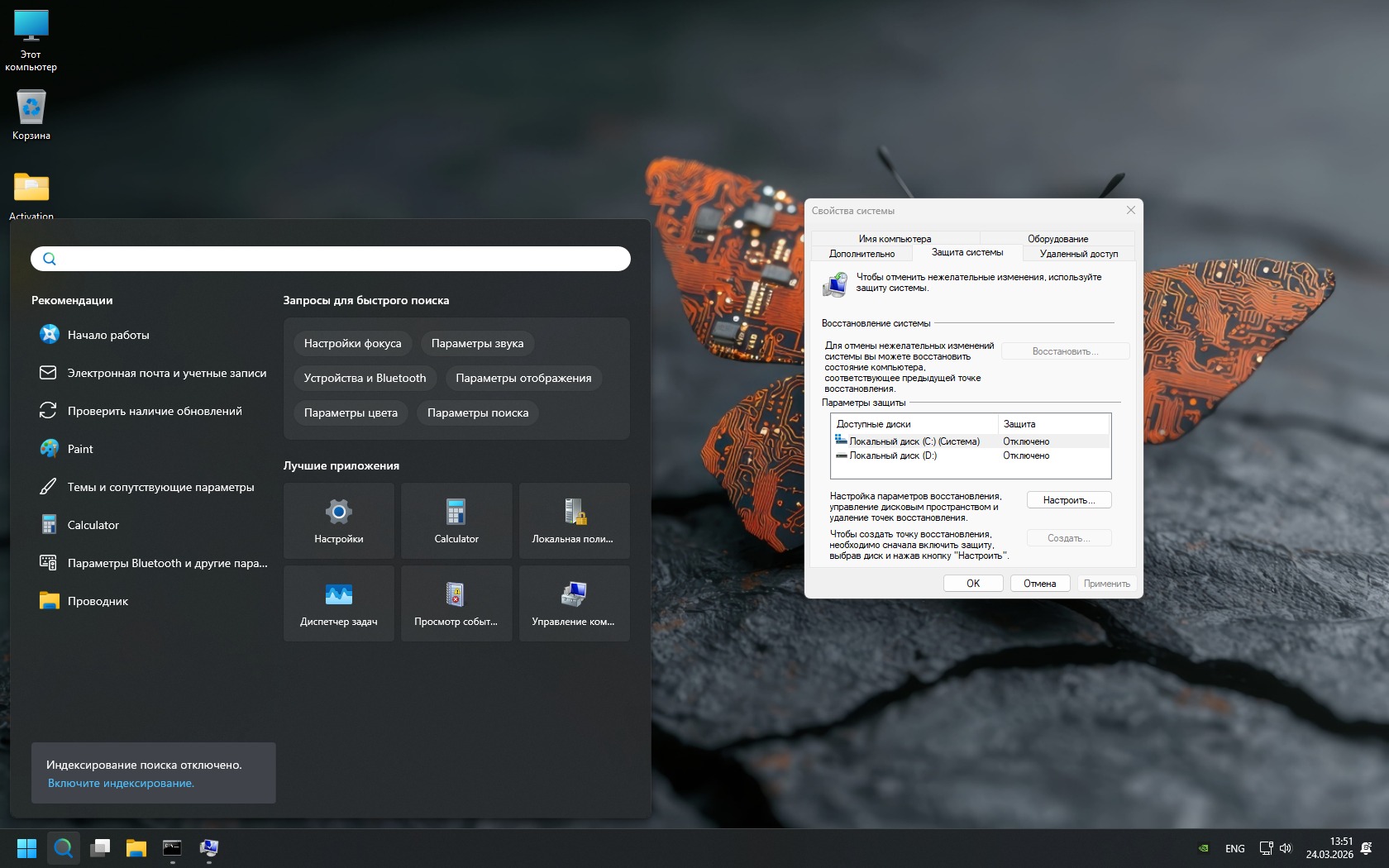 -Отключены не только UAC и Центр безопасности (с его Защитником и Смартскрином), но также и некоторые другие защиты (в том числе, изоляция ядра, Meltdown/Spectre). Обратите также внимание, что в сборке выключен и брандмауэр Windows, поэтому запуск сетевых игр и многих приложений будет происходить быстро и без лишних запросов подтверждений.