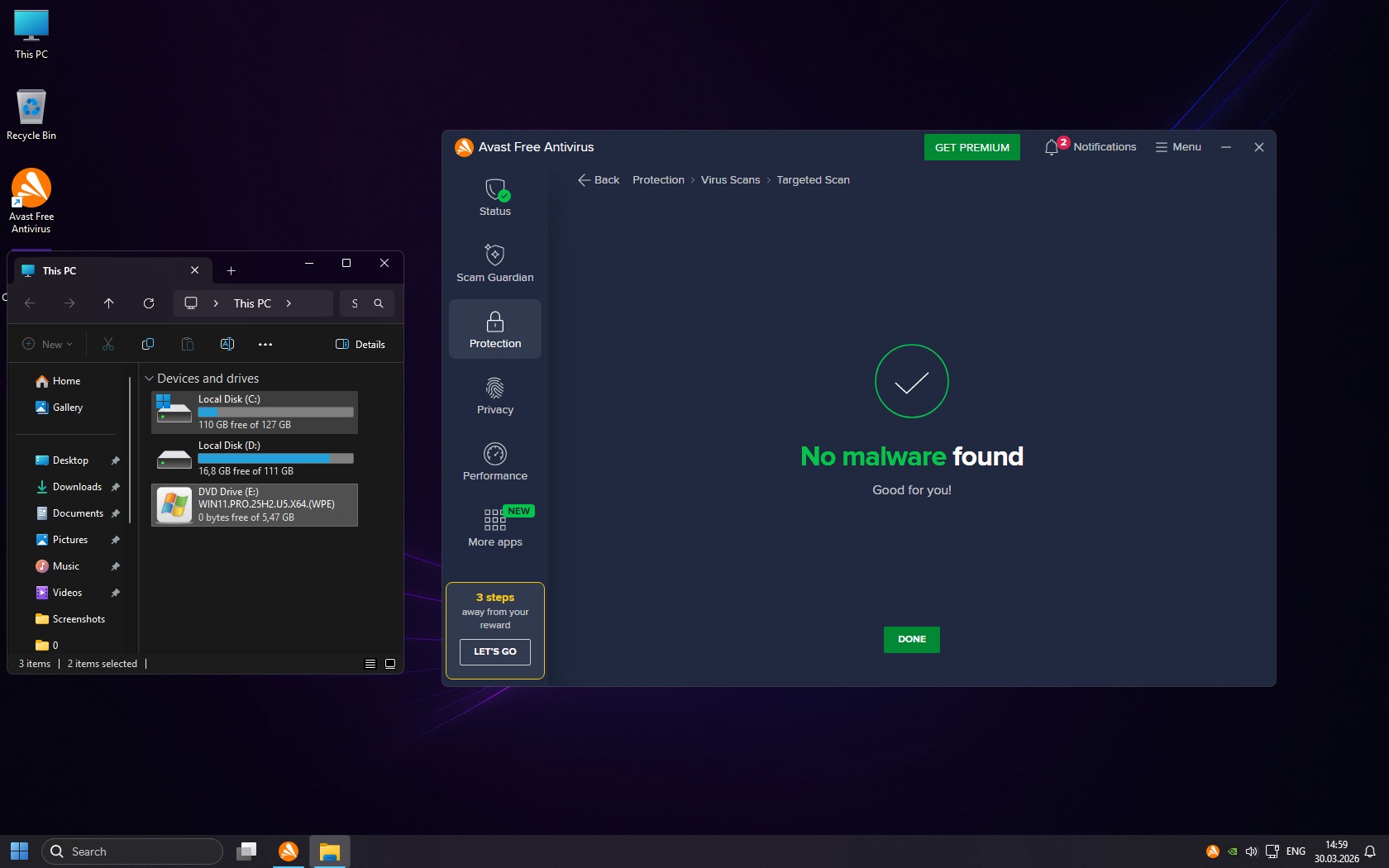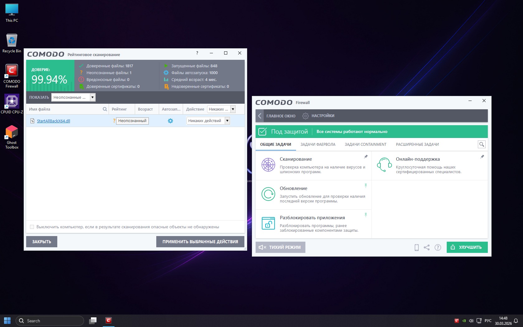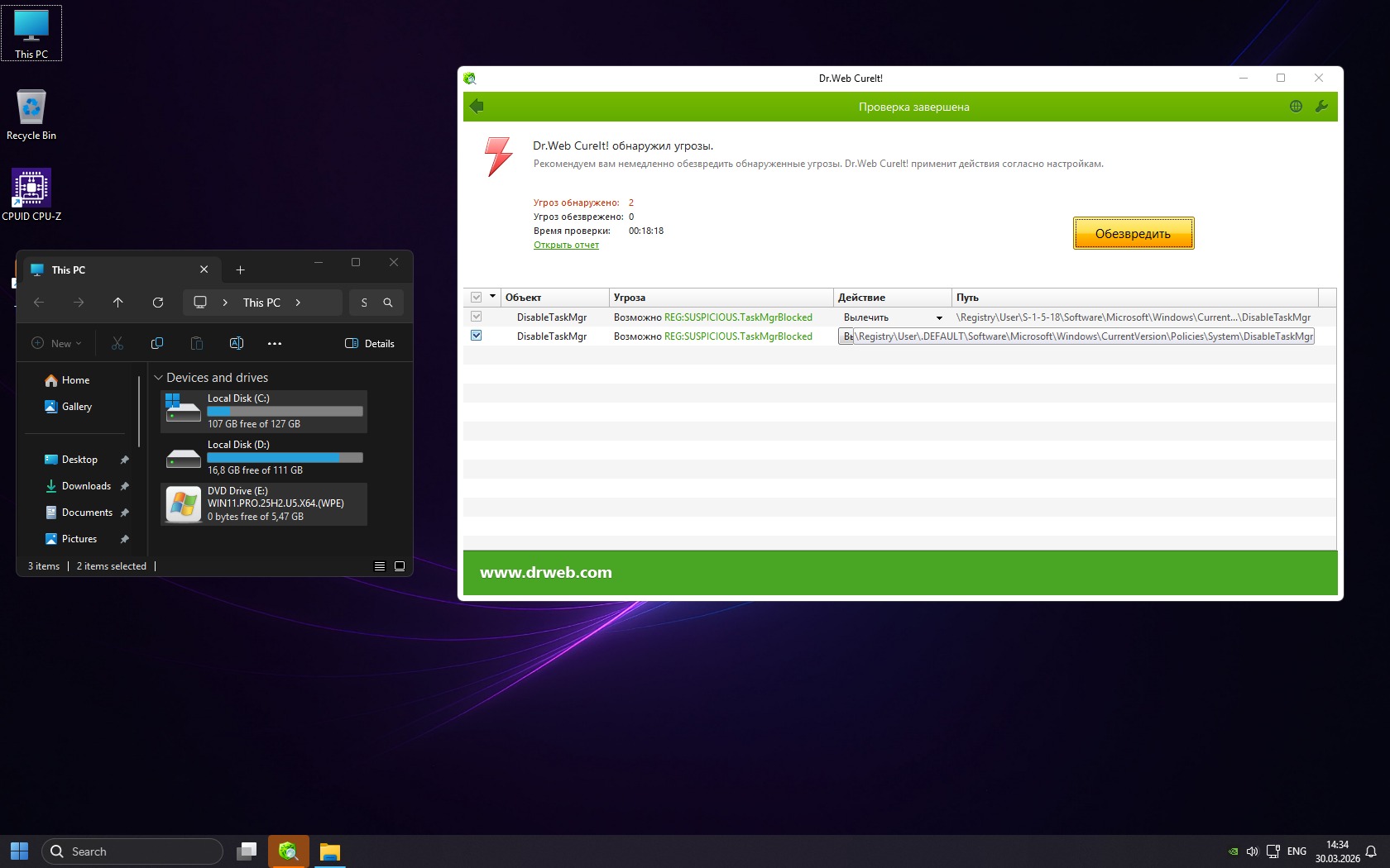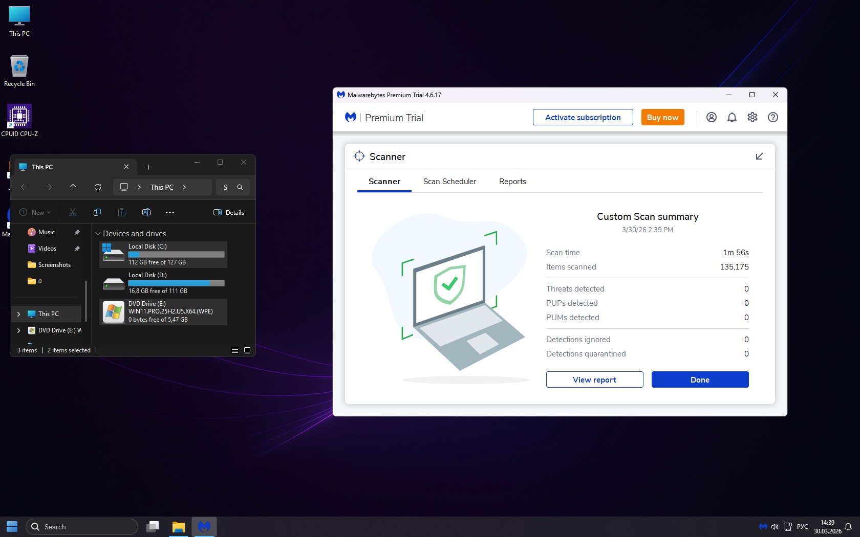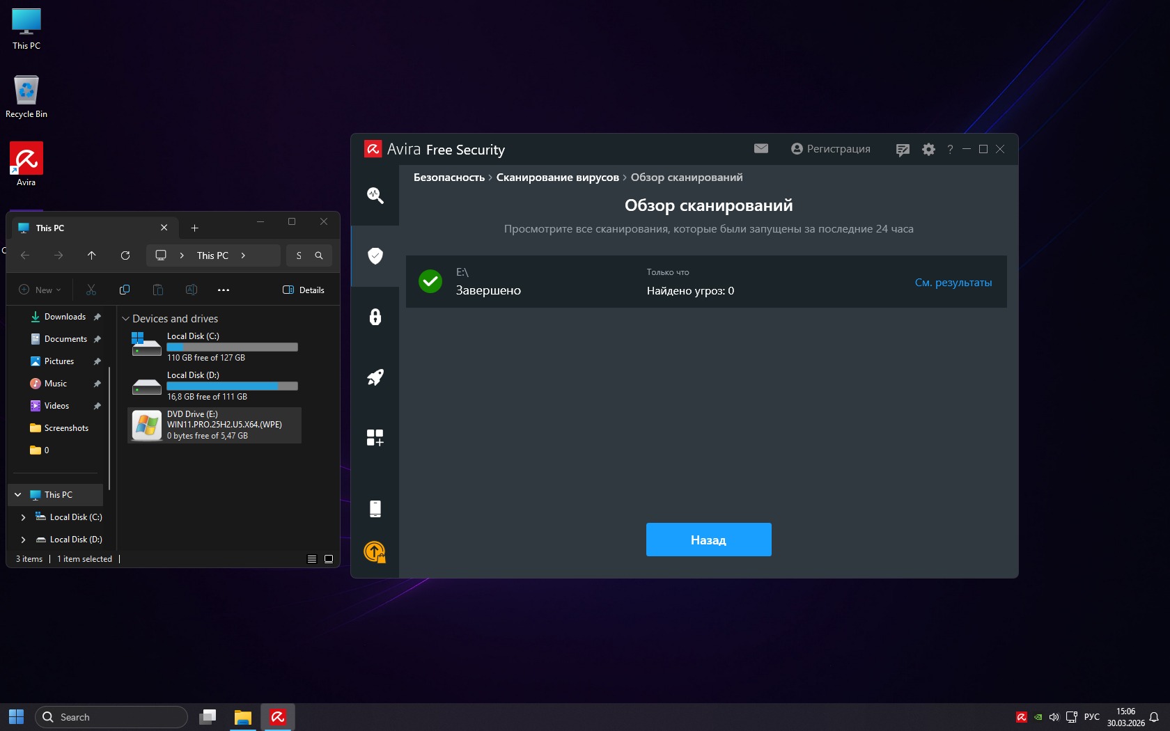 По результатам тестов сборка показала себя ожидаемо: быстрая, лёгкая, без явных критических проблем, но и не стерильная лабораторная система. Антивирусные проверки в целом чистые, за исключением единичных спорных моментов вроде параметров реестра и доверия к отдельным файлам — типичная история для подобных оптимизированных сборок. То есть ничего откровенно опасного не обнаружено, но важно понимать, что это не "оригинал от Microsoft", а кастом с изменениями логики системы.