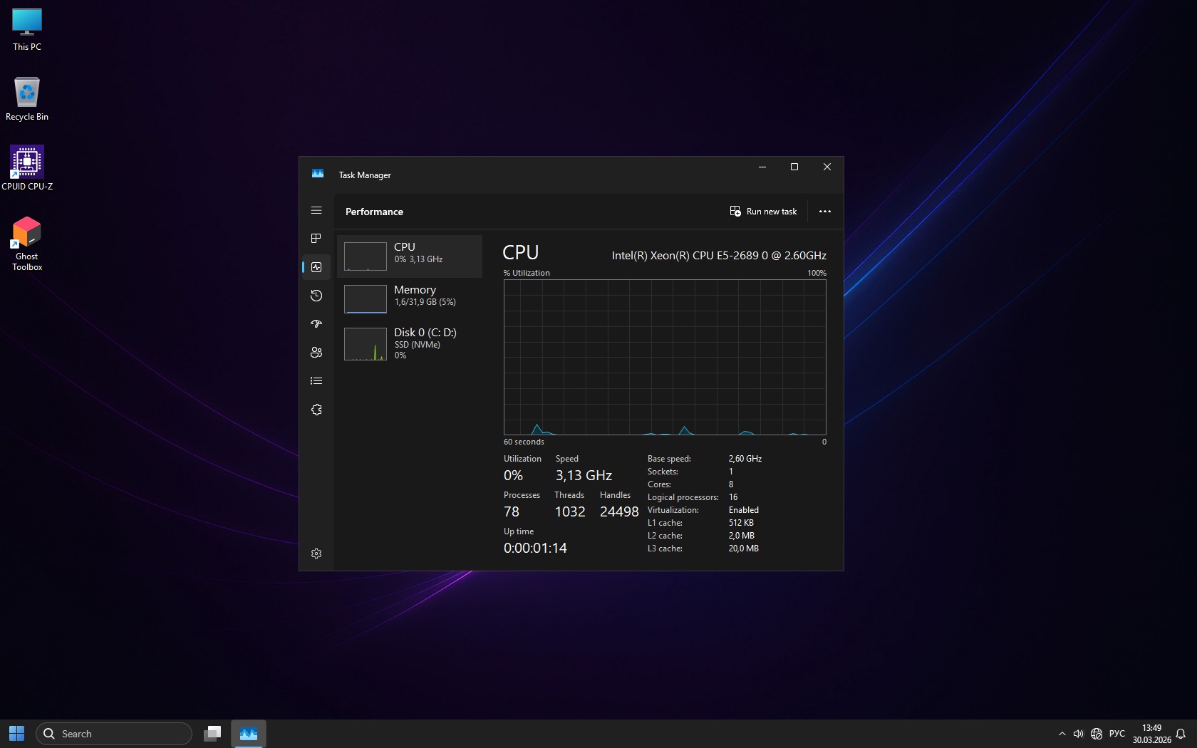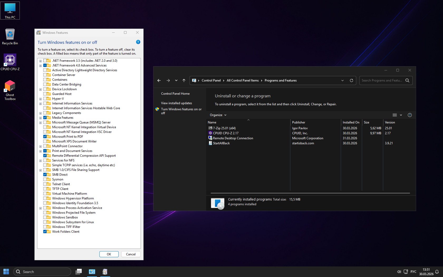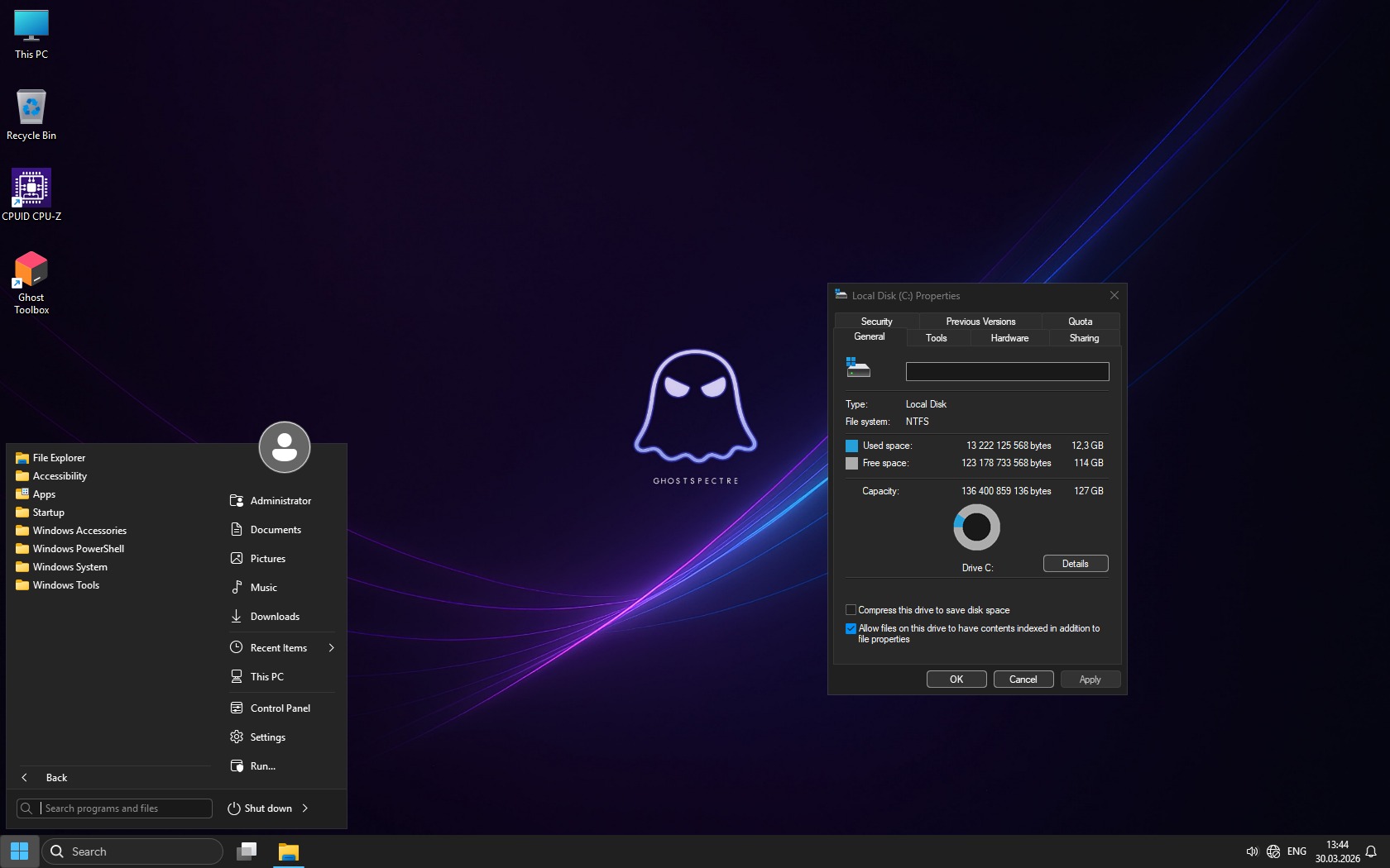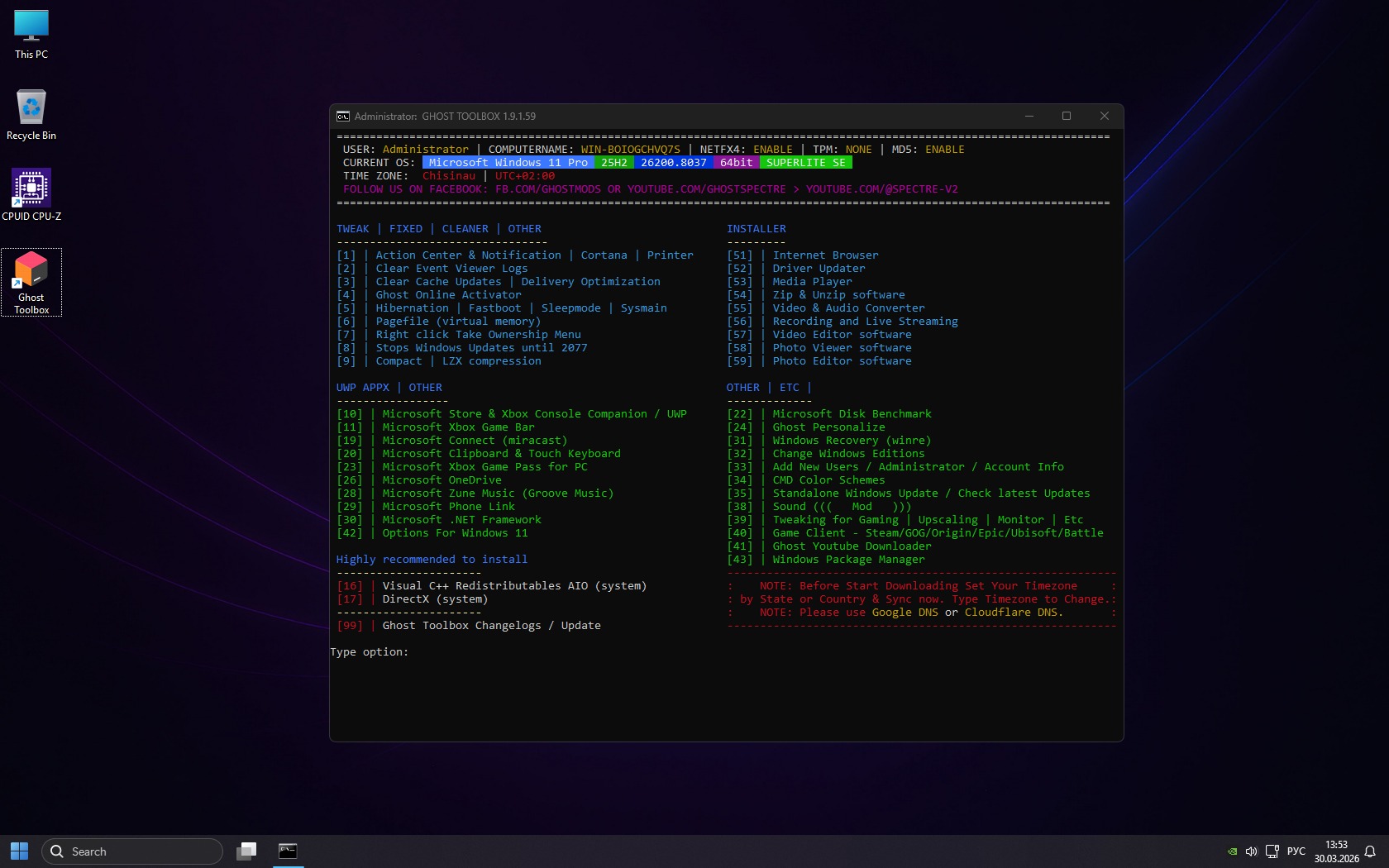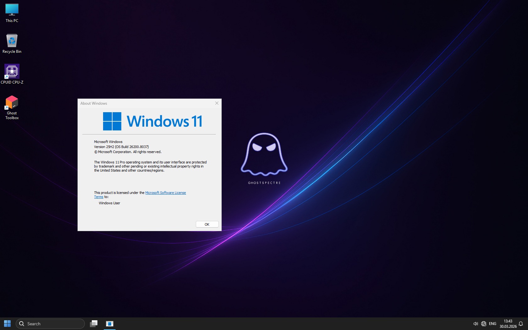 С Ghost Spectre вы получаете не просто чистую Windows, а инструмент, который позволяет настроить систему под себя: управлять компонентами через Ghost Toolbox, включать или отключать функции, которые вам нужны, экономить место на диске и ускорять загрузку приложений. Поддержка любых языков и раскладок, возможность выбора между встроенным TPM или запуском без него, а также оптимизация для игр и рабочих нагрузок делают сборку универсальной для всех пользователей.