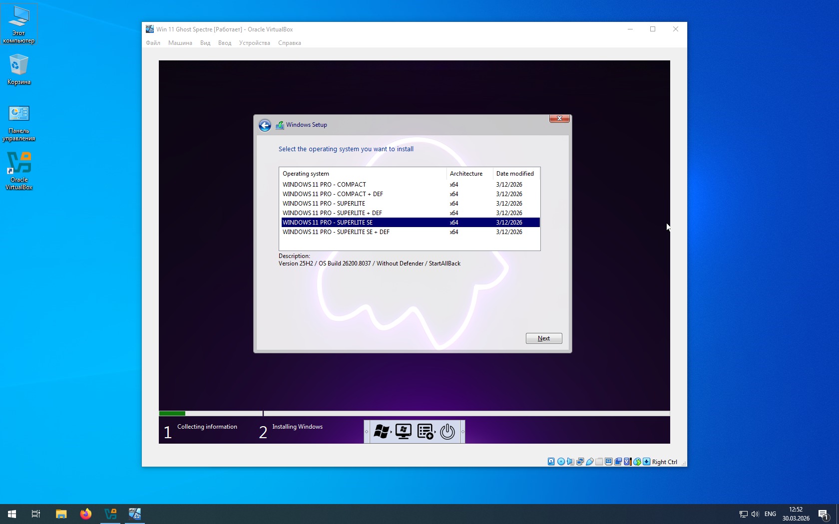 Параметры образа Windows 11 Pro 25H2 Ghost Spectre EN [Оригинал + русификатор] v.26200.8037: