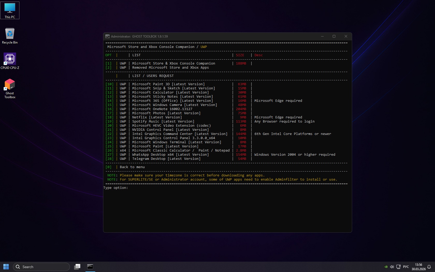 -Ghost Toolbox — удобный инструмент для управления системой: добавление/удаление Windows Store, возврат удалённых функций, настройка компонентов.