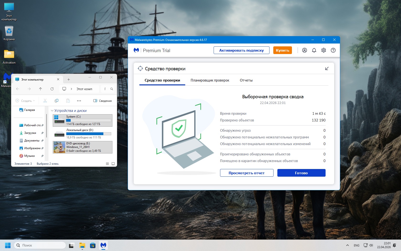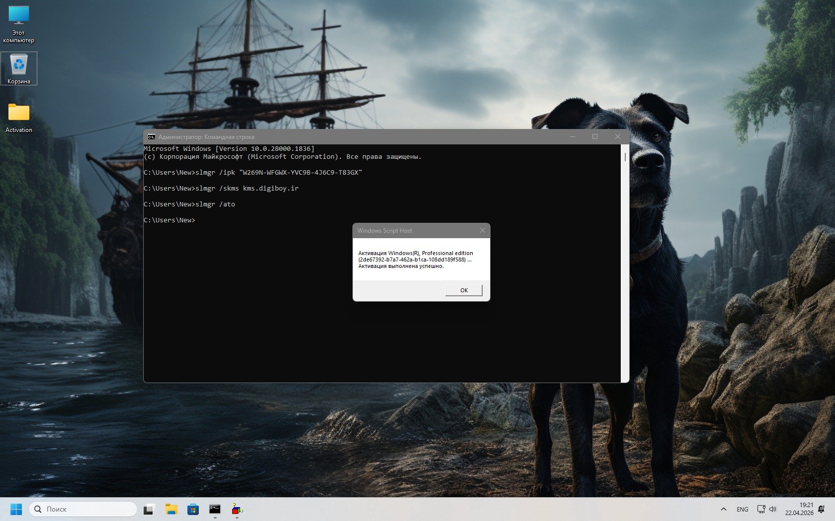 ВНИМАНИЕ! Рекомендуем устанавливать сборку при отключенном Интернете и использовать предложенный на рабочем столе метод активации (тремя командами).
